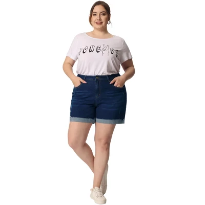 Agnes Orinda Women’s Plus Size Denim Roll Hem High-Rise Stretch Trendy Jean Shorts