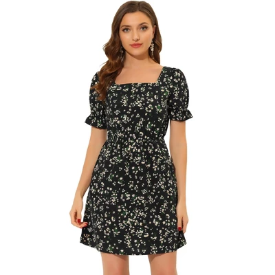 Made of lightweight and soft material, this short puff sleeves ensure that you can stay comfy all day. A square neck and ruffle cuffs add charm to this sweet dress. A very cute and beautiful mini dress with a swing hem, is a must-have item in your wardrobe. You can wear it casually with a necklace, a hat, and sandals for the summer beach look, or dress it up with your favorite bag and high heels for a special occasion.