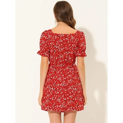 - Square Neckline, Floral Printed, Pockets, Mini Dresses