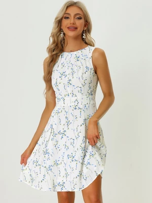 A go-to dress gets you from desk to dinner with perfect ease, and this fit-and-flare frock is framed with sleeveless design. The pleated neckline adds an elegant finish to this fit and flare dress. With a zipper back, it is easy to wear. Wear it with high heels for a chic and stylish look. Model Body Size: Height: 5’6″, Chest: 32 1/2 inches, Waist: 24 3/8 inches, Hip: 34 5/8 inches, Weight: 104 lbs, the model is wearing an X-Small. Good options for parties, picnics, sweet dating, shopping, festivals, banquets, office outfit, casual wear, and daily outfit.