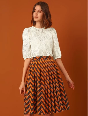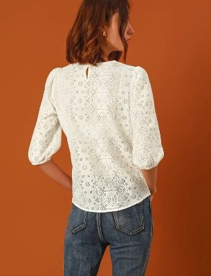 Classic with an elegant appeal, this semi-sheer lace top will always be timeless. The puff sleeve adds vintage-inspired sophistication, while the lace hollow-out gives it an elegant, feminine shape. For timeless everyday charm, pair it with denim wash jeans or high heels. Formal and Elegant for Dating, Work, Office, Shopping, Casual, Business Occasion, and Gathering.