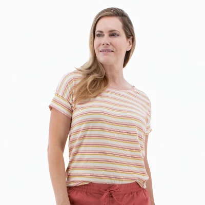 The ethically produced Redford Short Sleeve Top is a shirt worthy of daily wear! This shirt stands apart from the rest with a flattering shape, fair trade construction, and 100% sustainable fabric. With an earth-conscious combination of recycled cotton and recycled polyester, the jersey of this top feels soft and broken in right out of the bag. Combine that with its excellent drape and relaxed fit, you’ll never want to take it off! We love the subtle style elements such as the drop shoulders, mini dolman sleeves, and a shirttail hemline.