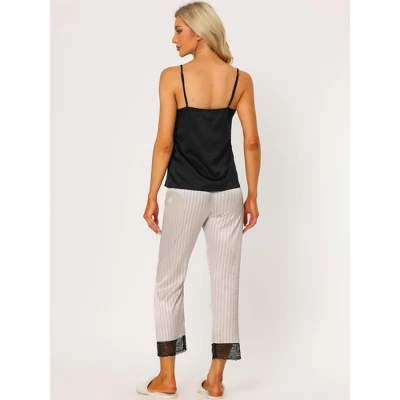 - Featuring Satin Fabric, V-Neck with Lace Trim, Pants with Elastic Waist design, this lounge sets make you feel cozy all night, enjoy a comfortable sleep and sweet dream