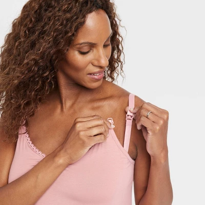 This Drop-Cup Nursing Maternity Pajama Set from Isabel Maternity by Ingrid & Isabel™ prepares your pregnancy wardrobe for the little one’s arrival. The two-piece sleepwear set comes with a V-neck tank-top tee and a pair of matching pants — both made from a soft, breathable fabric with spandex in a soft pink hue. The pullover tank has a drop-cup design that makes nursing discreet and simple, while its dainty lace-accented style gives your nightwear a fashionable touch.