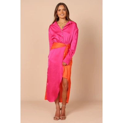 Make a statement in this stunning maxi length collared dress! Featuring long sleeves with button close cuffs, functional buttons down the front, and a waist tie detail for an extra touch of elegance. The side invisible zip ensures ease of wear while the front overlay wrap design adds to its unique charm.