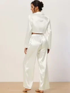 Cheibear Womens Satin Bottoms Lounge Trousers With Pocket Joggers Ankle Pants