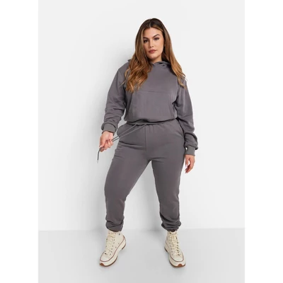 Cheibear Womens 2 Piece Outfits Sweatsuit Outfits Hooded Crop Sweatshirt And Jogger Tracksuit Set