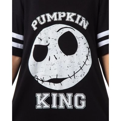 - CLASSIC TIM BURTON’S JACK SKELLINGTON DESIGN – This “The Nightmare Before Christmas” pajama dress features Jack Skellington with the words “Pumpkin King” around him in a distressed print. It’s perfect for showing off how much of a fan you are