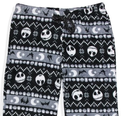 - GREAT FAIRISLE STYLE PATTERN – These black plush fleece pajama lounge pants feature an all-over Jack Skellington face Fairisle holiday design