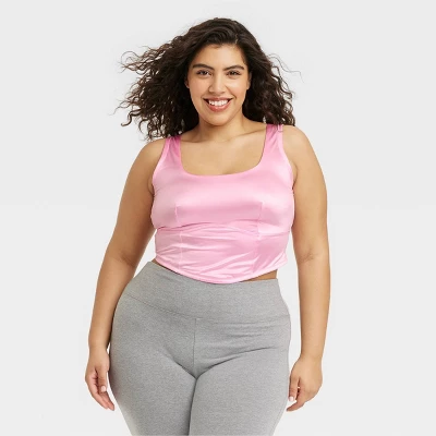 This Satin Corset from Colsie™ designed with lightly-lined cups for light support features a smooth pink finish with a touch of sheen and a U-cut mesh back. The stretchy fabric and adjustable shoulder straps offer a flexible and customizable fit, while the pullover style makes it easy to wear. You can wear the corset as a solo top or layer it over or under a wide variety of tops.